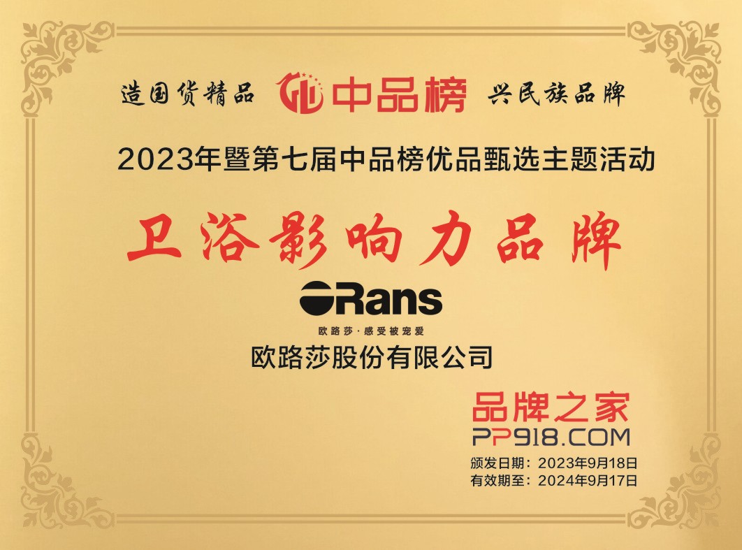 近日,第七屆“中品榜”榜單火熱出爐。歐路莎衛浴憑借過硬的產品質量、獨特的設計理念卓越的市場表現,成功脫穎而出,榮獲2023十大衛浴影響力品牌稱號。