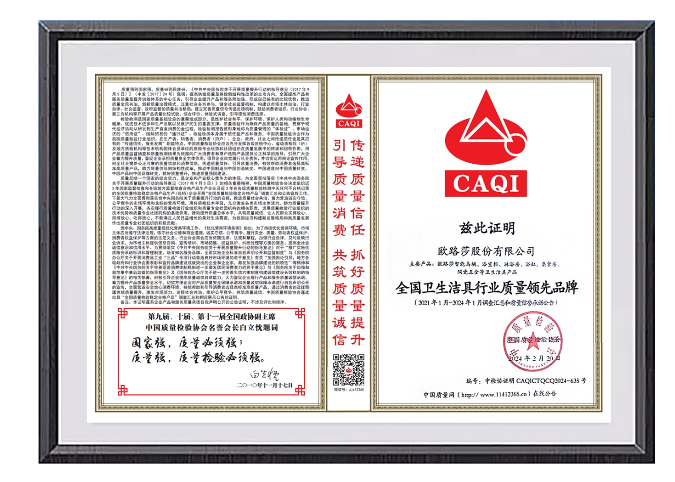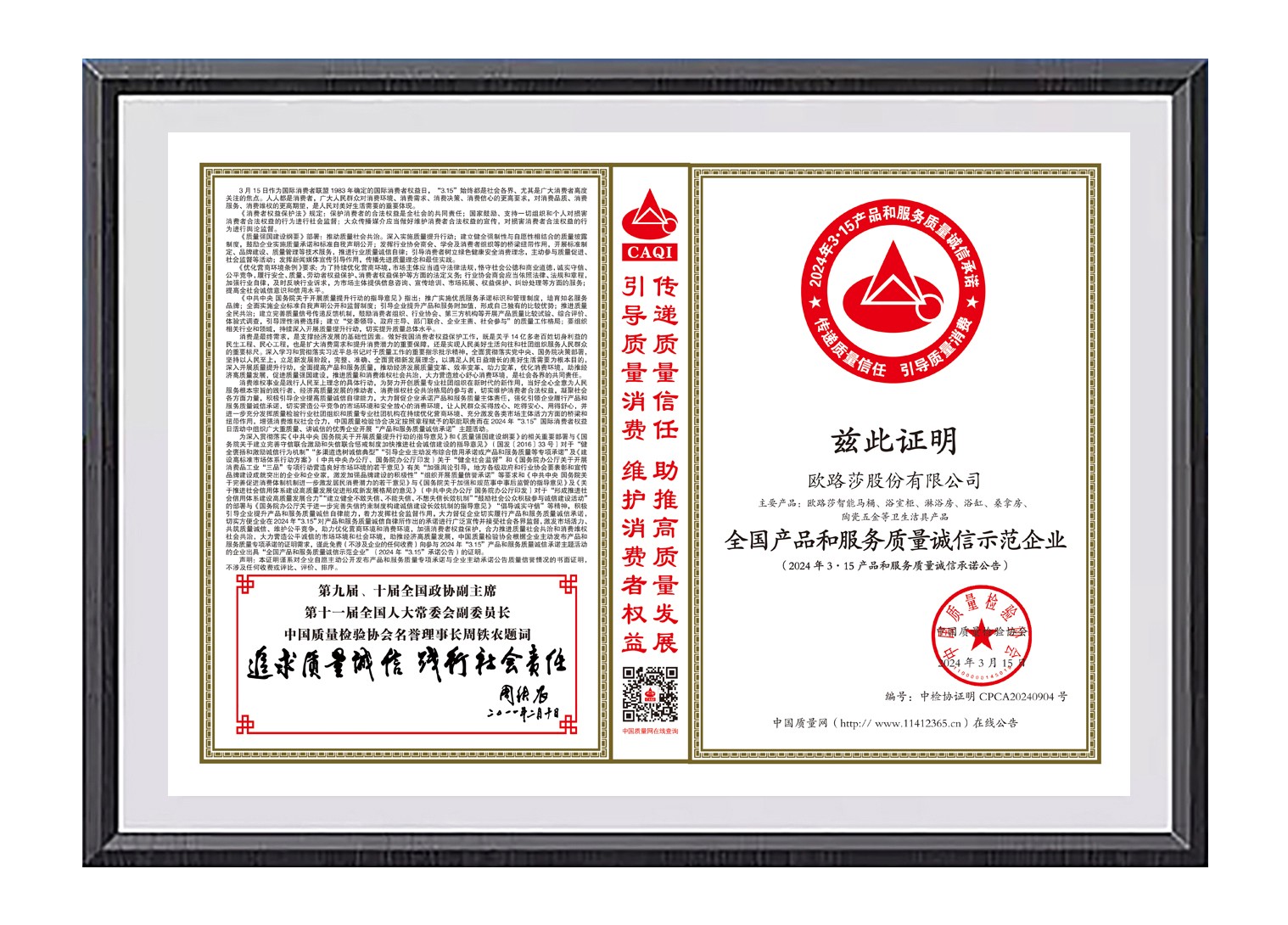 歐路莎衛浴斬獲殊榮的背后,是歐路莎對于質量與服務的不斷追求,也是社會、行業、消費者對歐路莎品質、實力的認可。