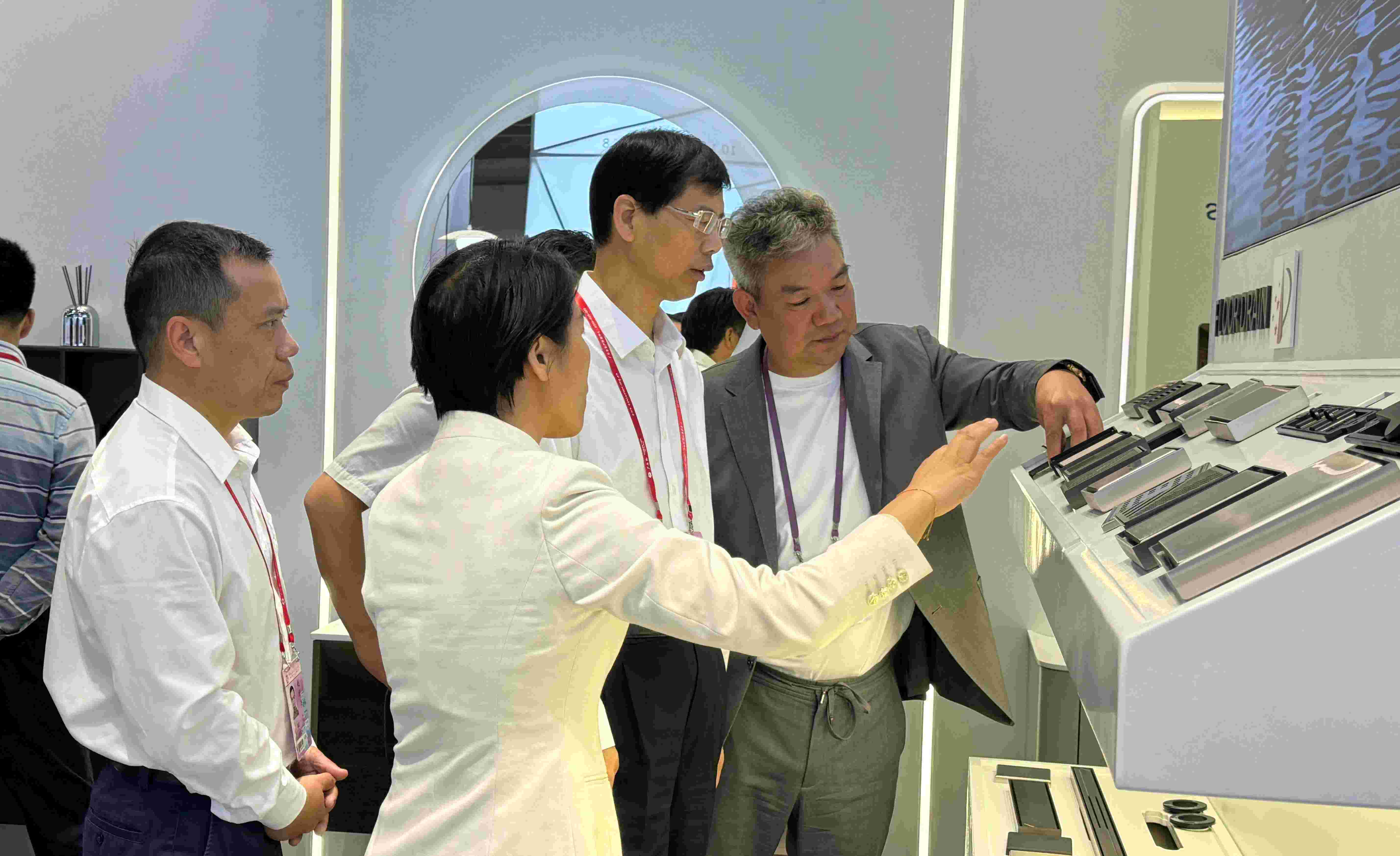 在董事長林華友的陪同講解下,陳建忠會長一行對歐路莎豐富的產(chǎn)品體系、領(lǐng)先的技術(shù)工藝和嚴(yán)苛的產(chǎn)品品質(zhì)都有了更深刻的了解。更是對歐路莎全新升級的純鏡系列地漏予以高度評價,勉勵歐路莎衛(wèi)浴要積極用好廣交會等重大國際展會平臺,開拓多元市場,讓更多“浙江質(zhì)造”走向世界,助推外資外貿(mào)高質(zhì)量發(fā)展。