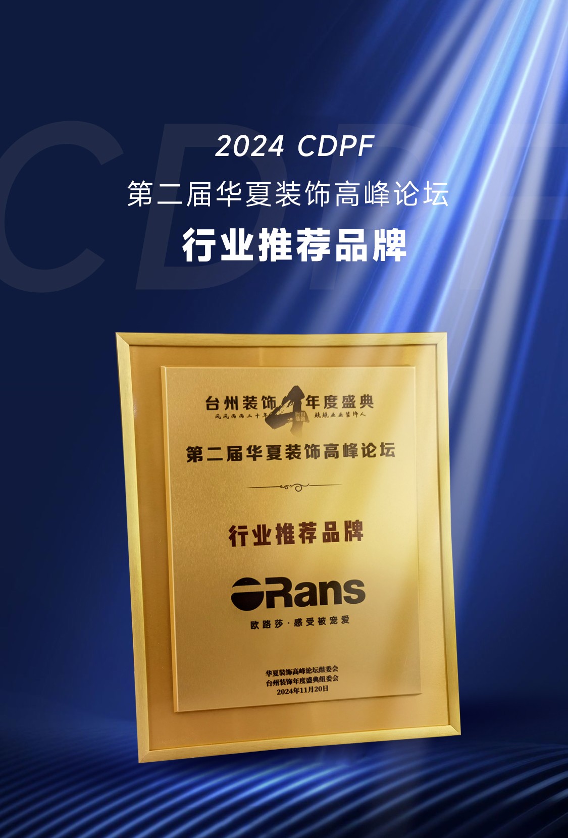 11月20日,2024·CDPF 第二屆華夏裝飾高峰論壇暨第四屆臺州裝飾協會年度盛典在浙江臺州白天鵝酒店隆重舉辦。歐路莎衛浴作為輪值會長及協辦單位,董事長林華友應邀出席并作為論壇嘉賓參與重要議題研討。