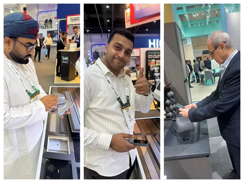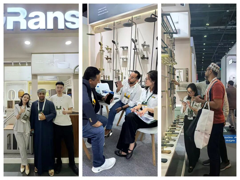 歐路莎衛浴展品巧妙地將現代科技與美學設計融為一體,吸引著眾多客商走進展館。工作人員與客商圍繞市場需求、產品特點及未來發展趨勢等關鍵話題展開深入探討,精準把握中東市場需求與特點,為進一步拓展海外市場筑牢堅實根基。