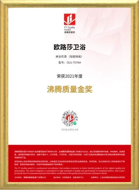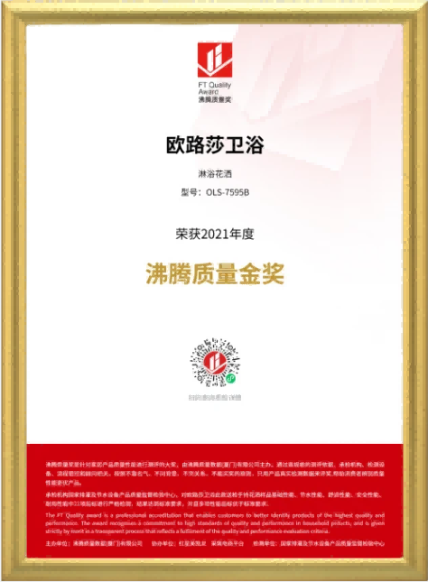 在2021年度沸騰質(zhì)量獎測評中,歐路莎衛(wèi)浴參評的智能馬桶IT-321、淋浴花灑OLS-7595B、淋浴花灑(硅膠除垢)OLS-7576H、普通連體座便器OLS-950等4款產(chǎn)品,經(jīng)過檢測機(jī)構(gòu)專業(yè)、嚴(yán)格檢測,結(jié)果都達(dá)到標(biāo)準(zhǔn)要求,并且多項性能指標(biāo)遠(yuǎn)優(yōu)于標(biāo)準(zhǔn)要求,獲得“沸騰質(zhì)量金獎”。
