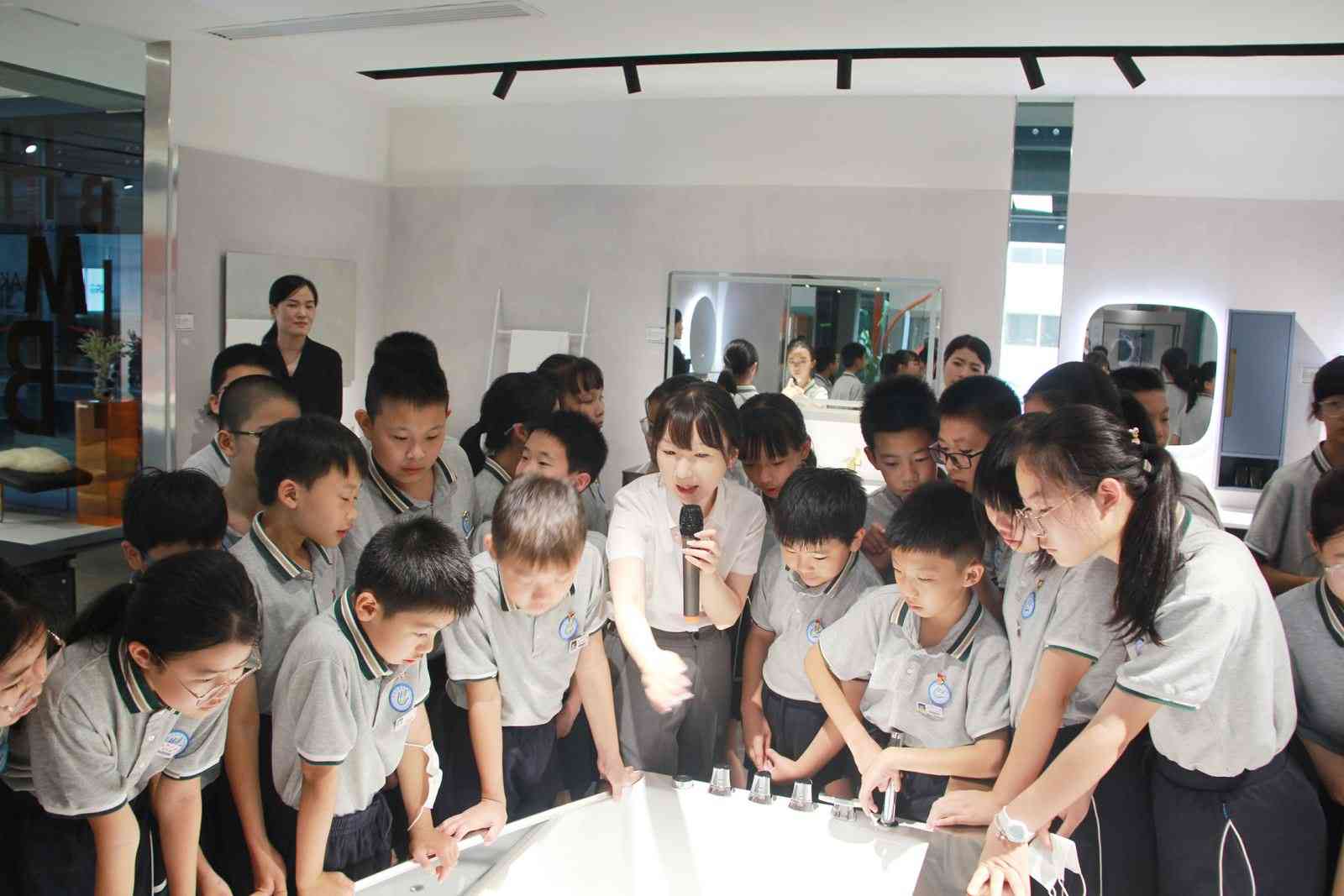 游學團首先來到的是歐路莎的國際展廳,在琳瑯滿目的衛浴產品中感受來自科技的魅力。工業設計師許靚為大家詳細介紹了展廳內產品的材質和功能,并讓大家用視覺和觸覺感知差別。