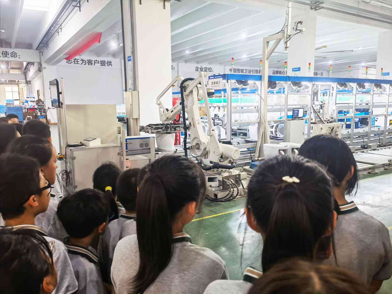 “合抱之木,生于毫末;九層之臺,起于累土;千里之行,始于足下。”一家企業的成功,離不開技術的積累和對于品質的追求。林董事長帶著游學團又來到了智能馬桶車間,在整齊的生產線和巨大的機械臂下,工人們有序地進行工作,從組裝、測試到最后的裝箱環節,每一個步驟都無比嚴謹,將智慧制造的魅力體現得淋漓盡致。