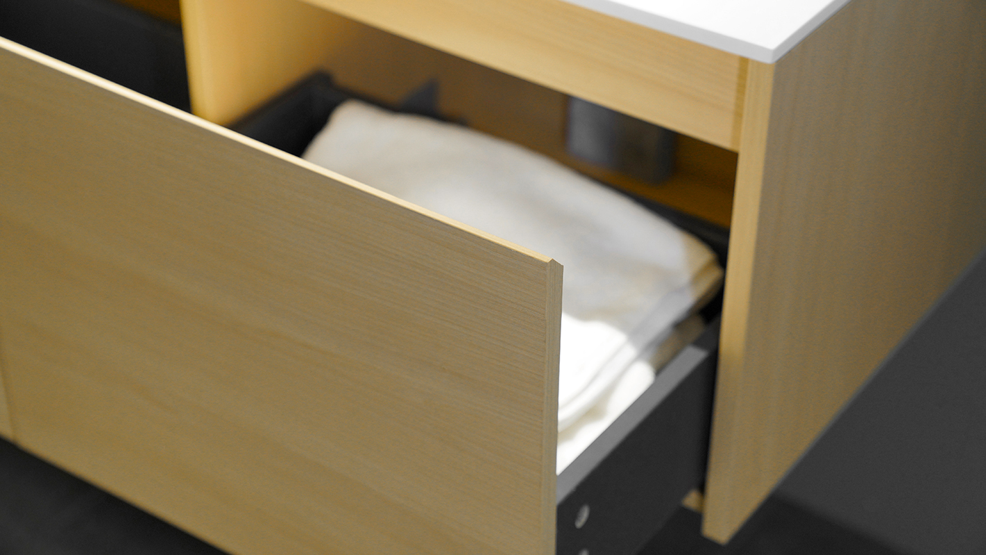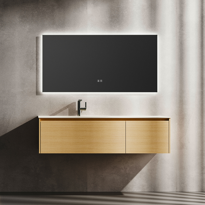 隱藏式大雙抽,科學引導合理的收納,方形智能鏡設計,超大鏡面內嵌暖色燈帶,讓空間在視覺上更加開闊