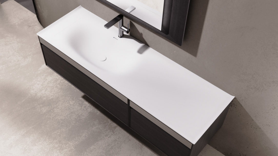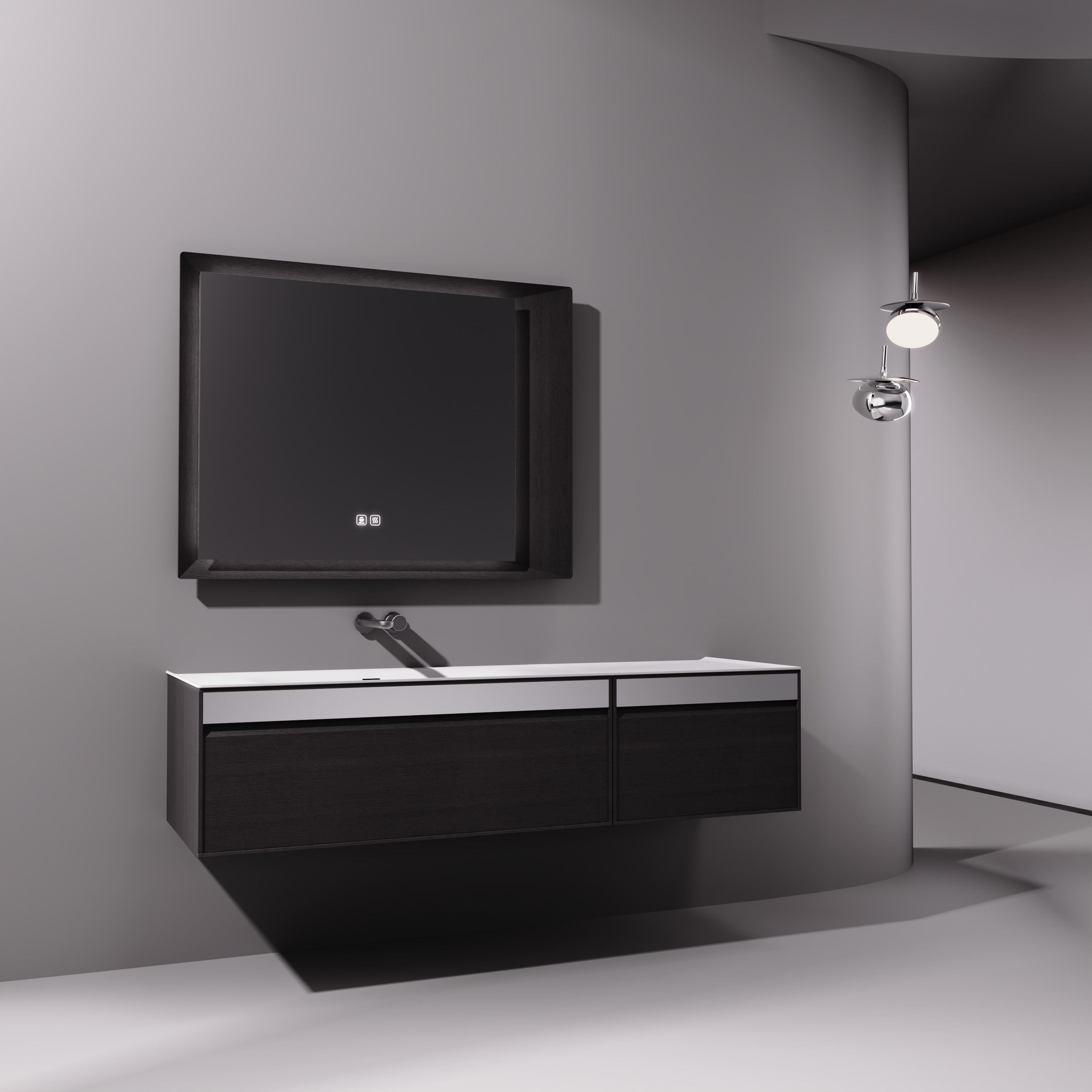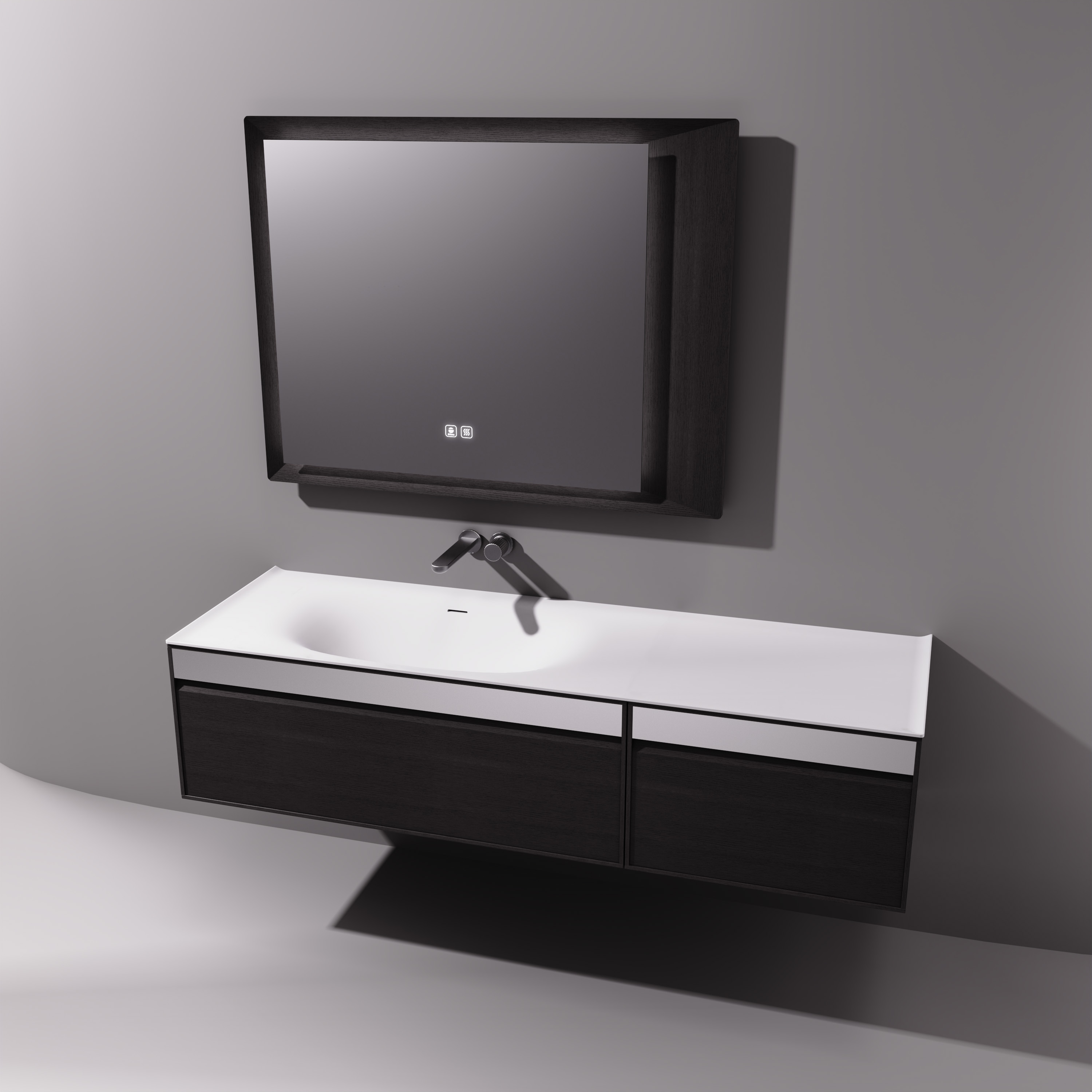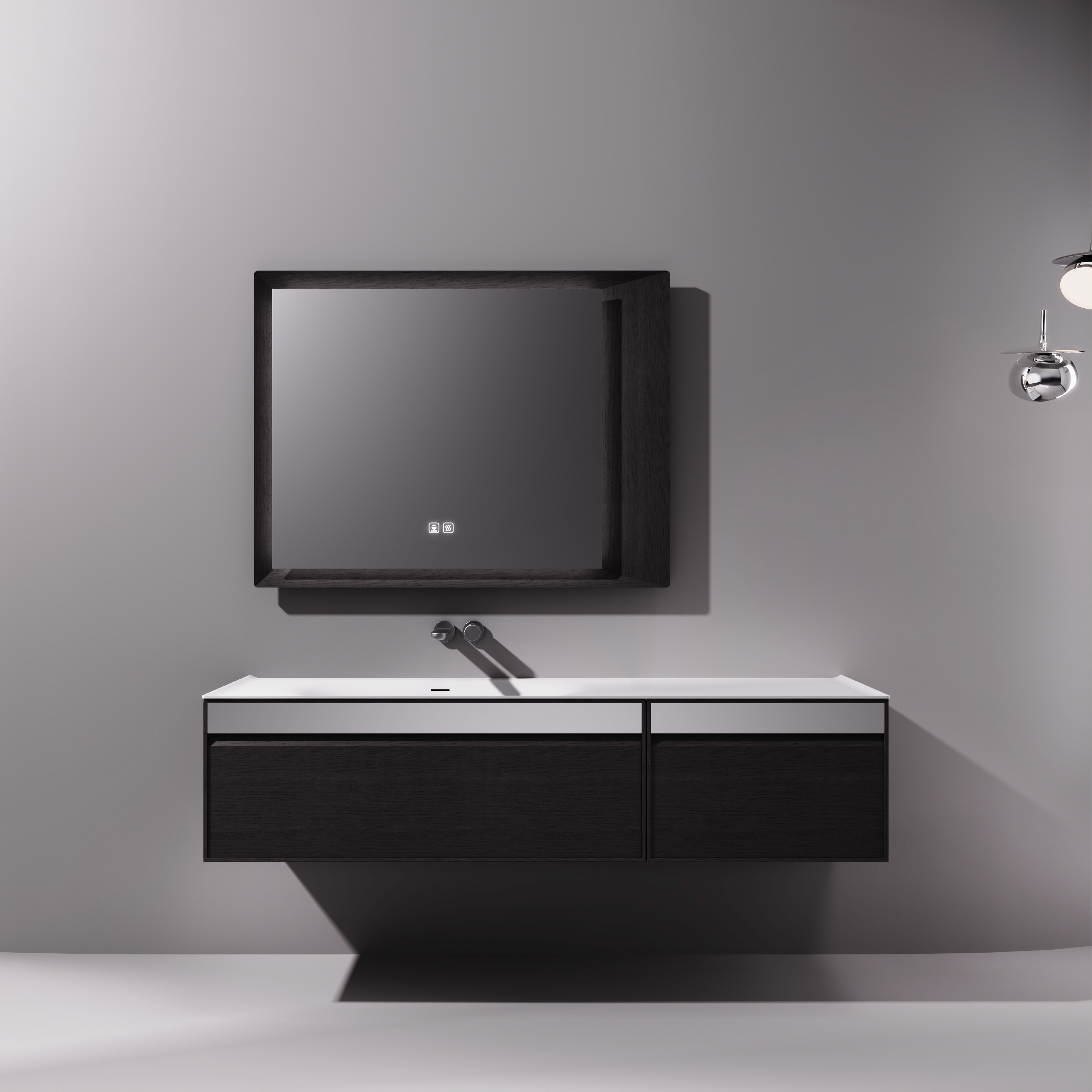 材質:白色奇美石一體盆/炭黑榆木/智能藝術鏡
