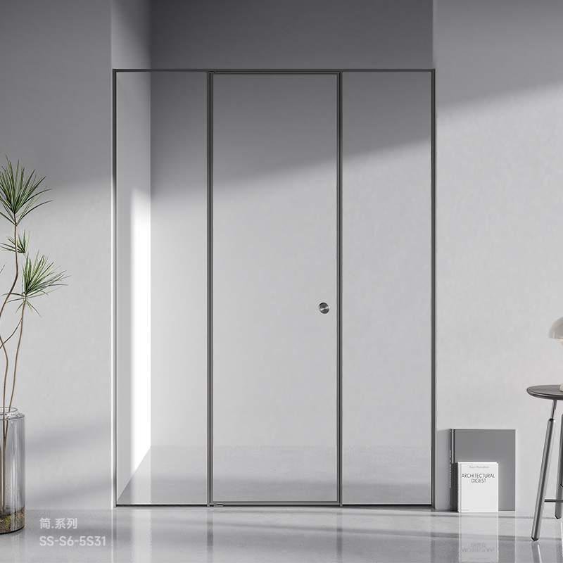 精密隱藏式天地軸設計四兩撥千斤,與優質SUS304不銹鋼型材全包邊框完美銜接,硬度高、耐腐蝕、抗氧化,經久耐用,給人帶來安全、靜謐感。