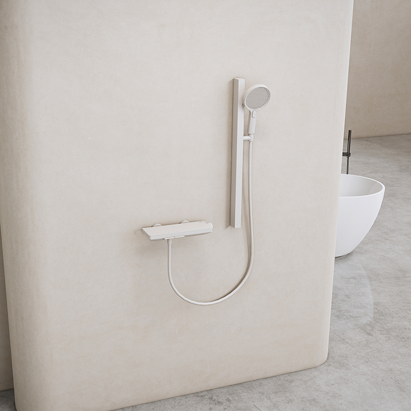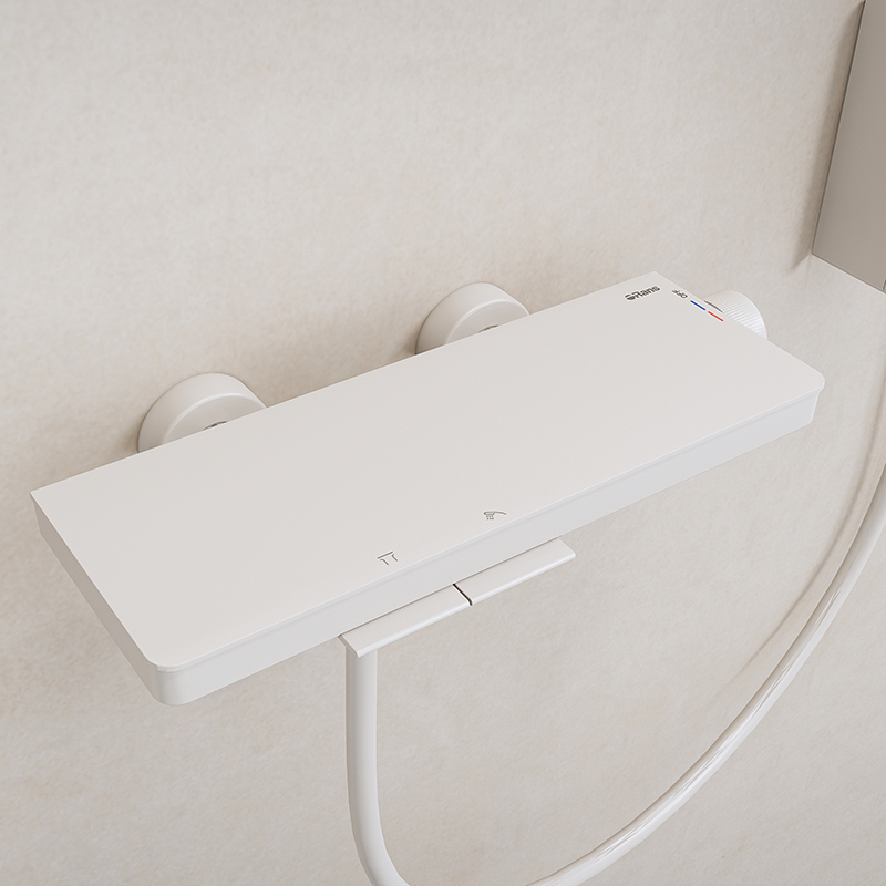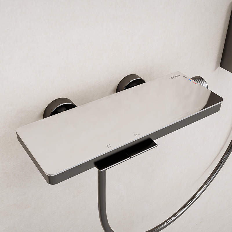 打破傳統(tǒng)把手式設(shè)計(jì),開(kāi)關(guān)按鍵結(jié)合旋鈕式調(diào)溫,帶來(lái)全新的淋浴體驗(yàn)