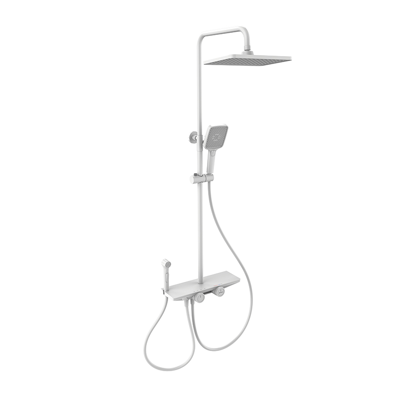 硅膠除垢頂噴、手持,優質陶瓷閥芯,防纏繞雅鉑銀軟管,四功能,置物功能,物品隨心取放,旋鈕式按鍵式出水