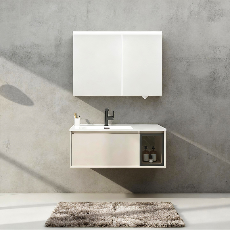 • 大雙抽+側開格:抽屜放日常用品,鋁框開門格存瓶罐雜物,干濕分離,取用順手。收納,原來可以如此優雅而高效
