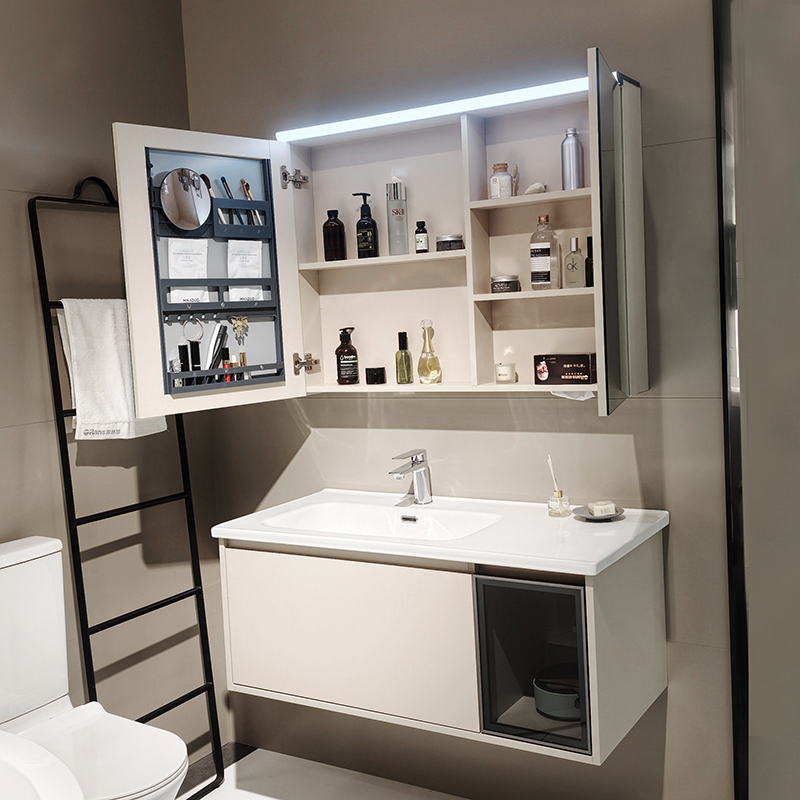 材質:多層板/陶瓷一體盆/鏡柜(氛圍鏡前燈)