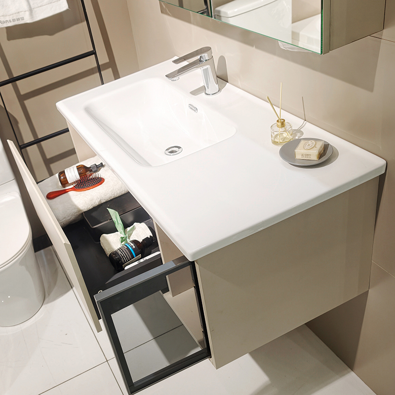 易潔陶瓷一體臺盆,弧面流暢無接縫,污漬無處殘留,表面晶瑩剔透、平整細膩,不易沾染污漬,容易清潔,便于日常維護
