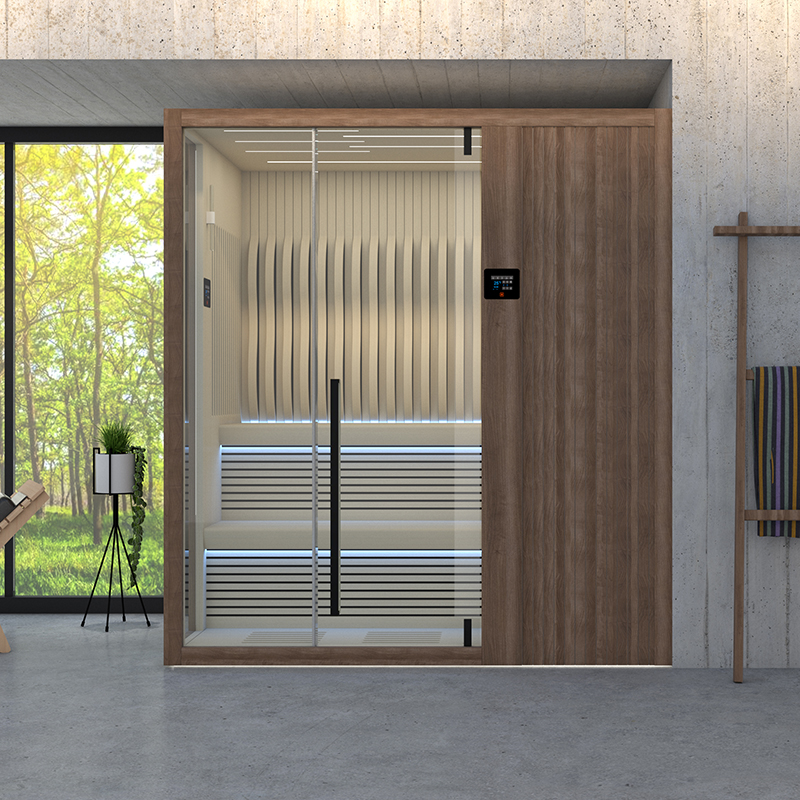 雙彩屏觸控智能系統(含藍牙音樂、收音、臭氧消毒、智能APP等)、遠紅外汗蒸系統衣掛、坐凳、彩色氛圍燈系統、一體式發熱板、底部防撞夜燈、靠背、造景墻、置物板、枕頭、躺位臀部加熱系統(可單獨控制) 、 沙漏、度計、木桶、木勺、桑拿石、瑞典TYLO原裝進口6.0KW干蒸爐。