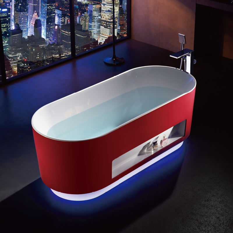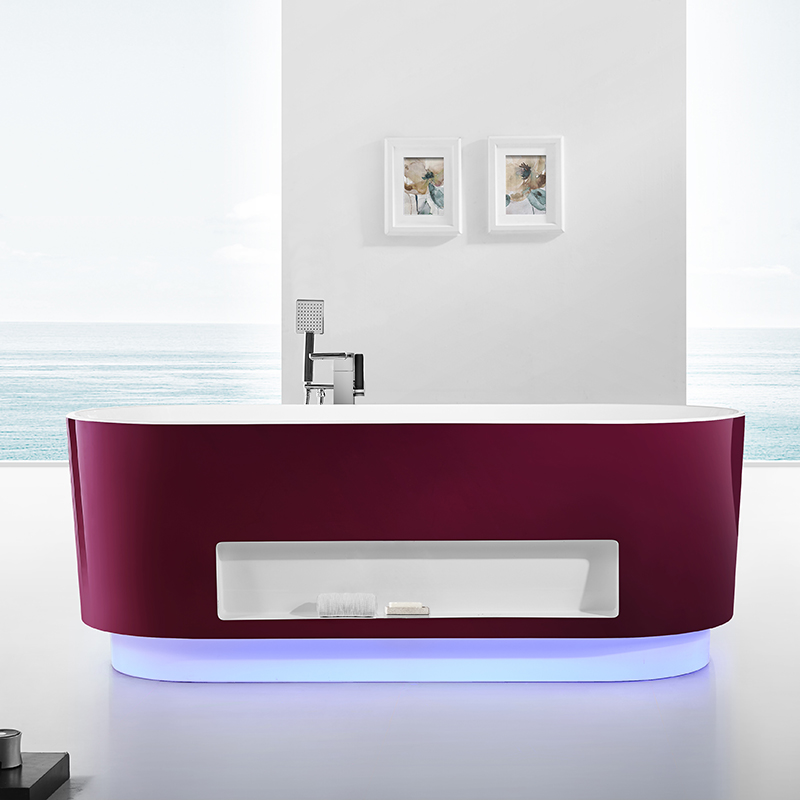 全新浴室概念,大膽創(chuàng)新雙色無縫一體,裙邊內(nèi)嵌置物,配以微波感應(yīng)360°立體感應(yīng)七彩燈帶,玫瑰紅嫵媚動人,智感十足。