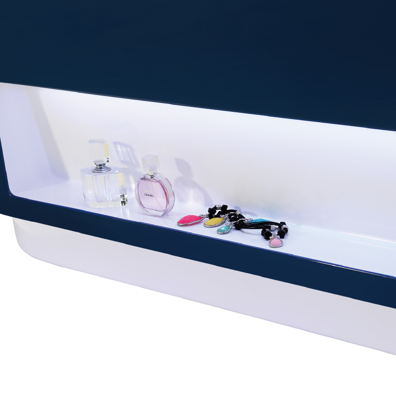 創(chuàng)新設(shè)計(jì)與浴缸一體成型的裙邊內(nèi)嵌置物架,隨手放置泡澡等沐浴物品,方便貼心。