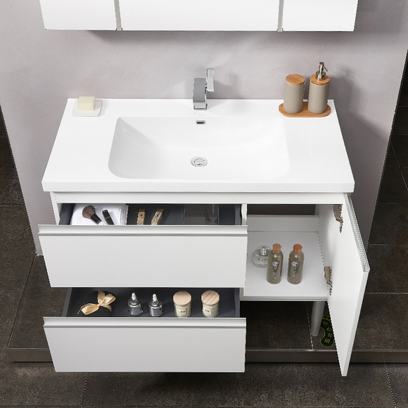 實(shí)木多層板,防水防潮;品質(zhì)鋁材,經(jīng)久耐用;抗污一體微晶石臺(tái)盆,易打理,盆深不濺水。