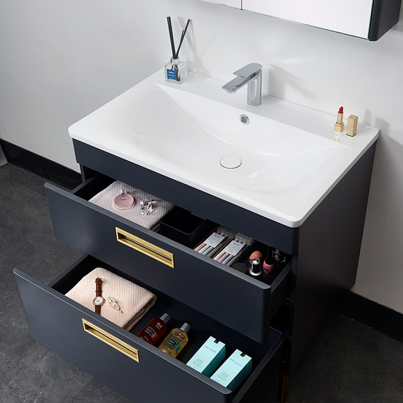 實木多層板,防水防潮;品質鋁材,防腐防銹;一體成型微晶石臺盆,舒適手感,易打理。