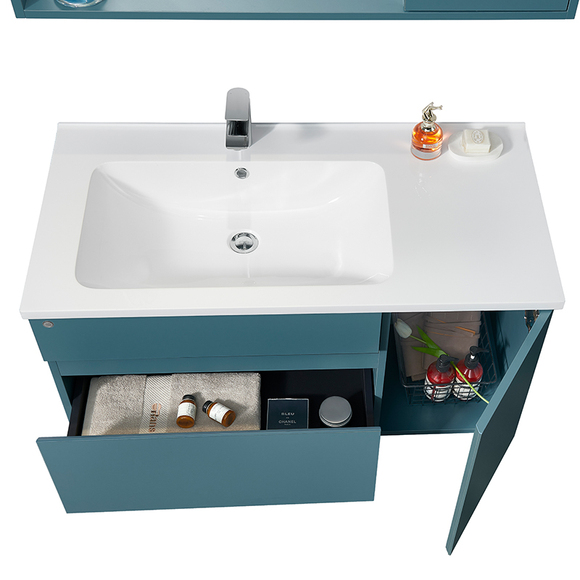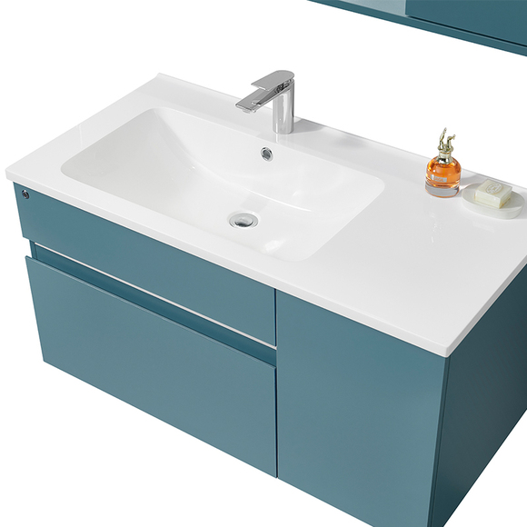 斜邊免拉手的設計使柜體更加平整;一抽一開的雙收納,讓置物更為合理。