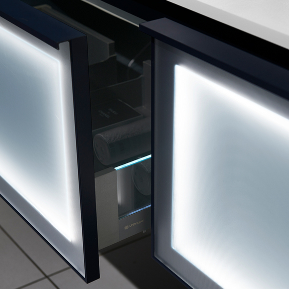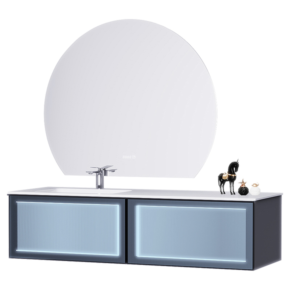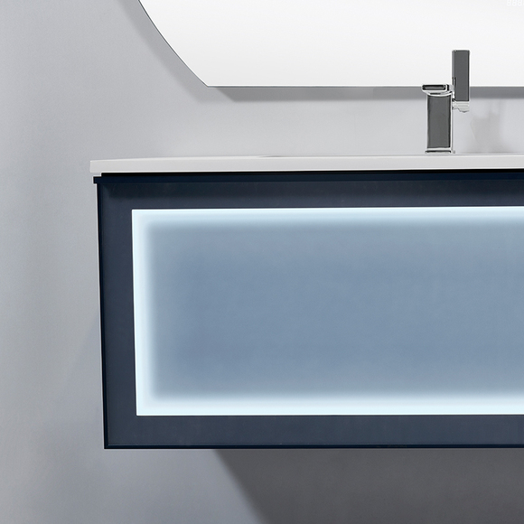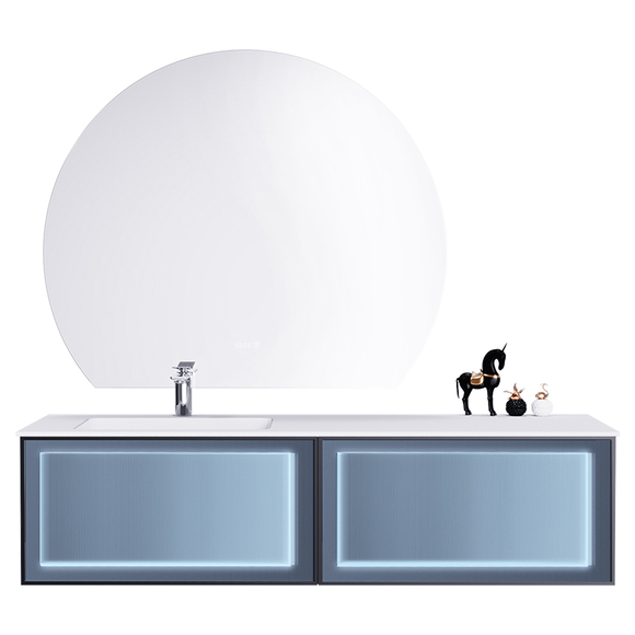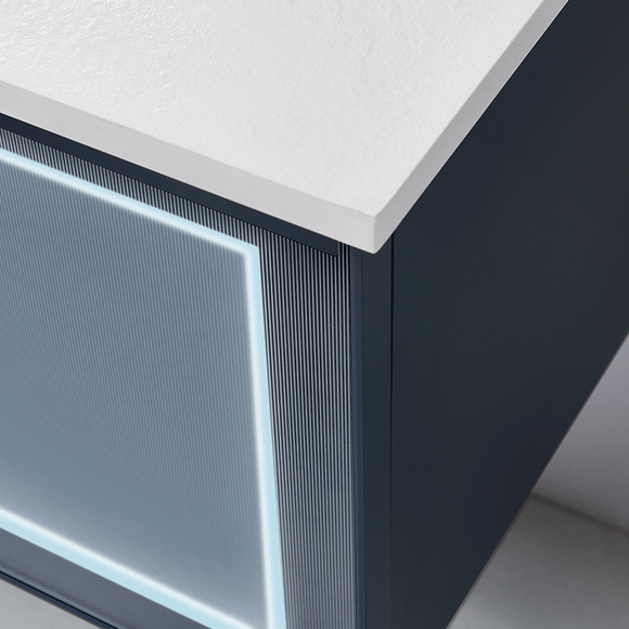 主柜顏色:柜體油漆靜謐藍(lán),抽面靜謐藍(lán)鋁框玻璃帶燈