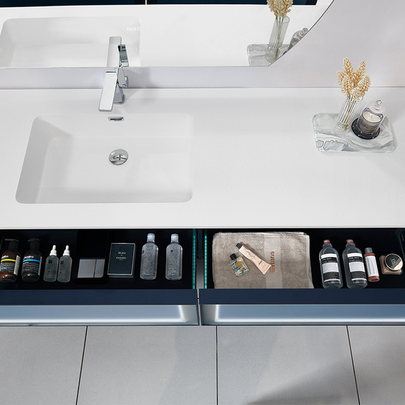 小尺寸柜體運(yùn)用了抽屜+置物格+側(cè)柜的收納設(shè)計(jì),置物格內(nèi)可放置隨手使用便捷的物品,抽屜與側(cè)柜分區(qū)放置衛(wèi)浴產(chǎn)品,密閉保存,干凈衛(wèi)生。