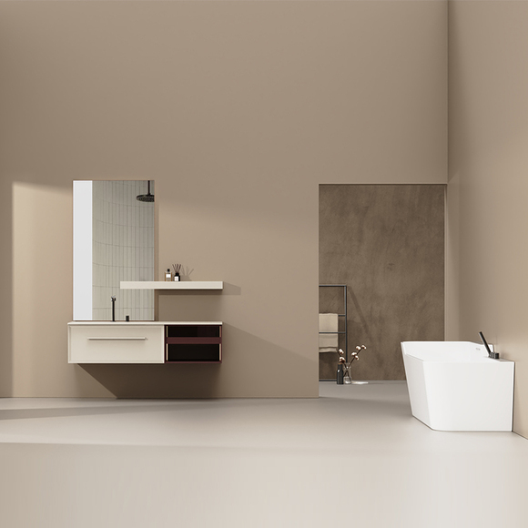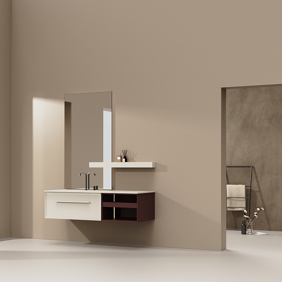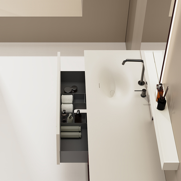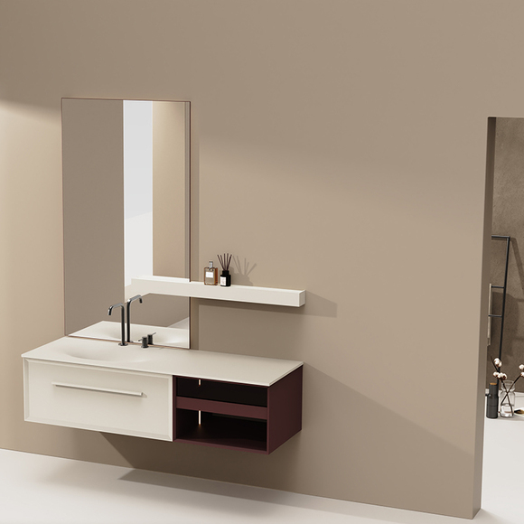 高頻使用物品,巧妙的收納在置物架及臺面處,柜體抽屜的大容量設計提供了豐富的個性收納空間,使浴室更為整潔、舒適,為您創造完美的儲存體驗。